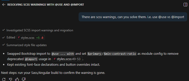 There are scss warnings, can you solve them. I.e. use @use vs @import