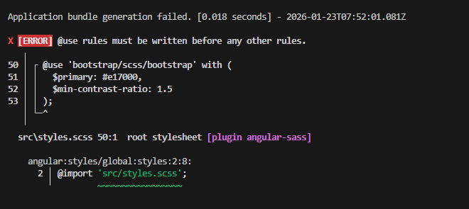 So okay, I have this angular 21 project that gives an error, well error, warning.