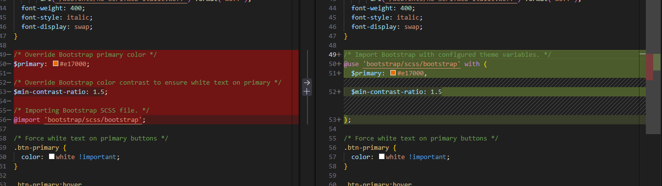 There are scss warnings, can you solve them. I.e. use @use vs @import